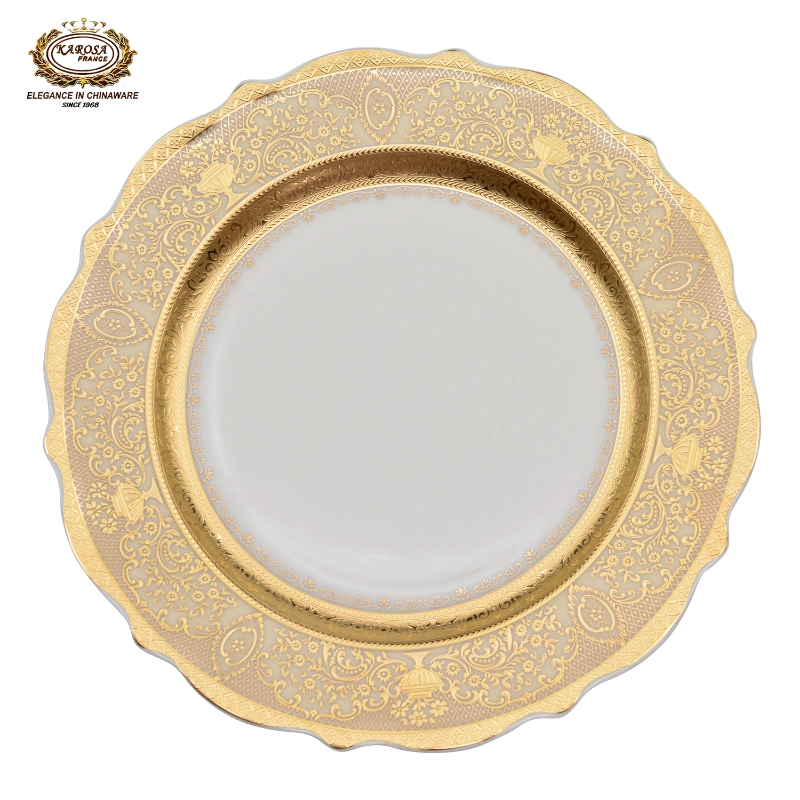Luxury Gift Bone China 98pcs Dinner Set – European Palace Style Embossed Gold Rim