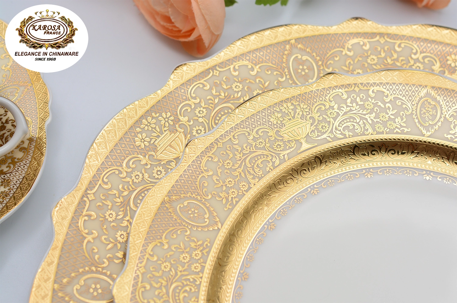 Technique: Hand embossing + on-glaze gold rim process