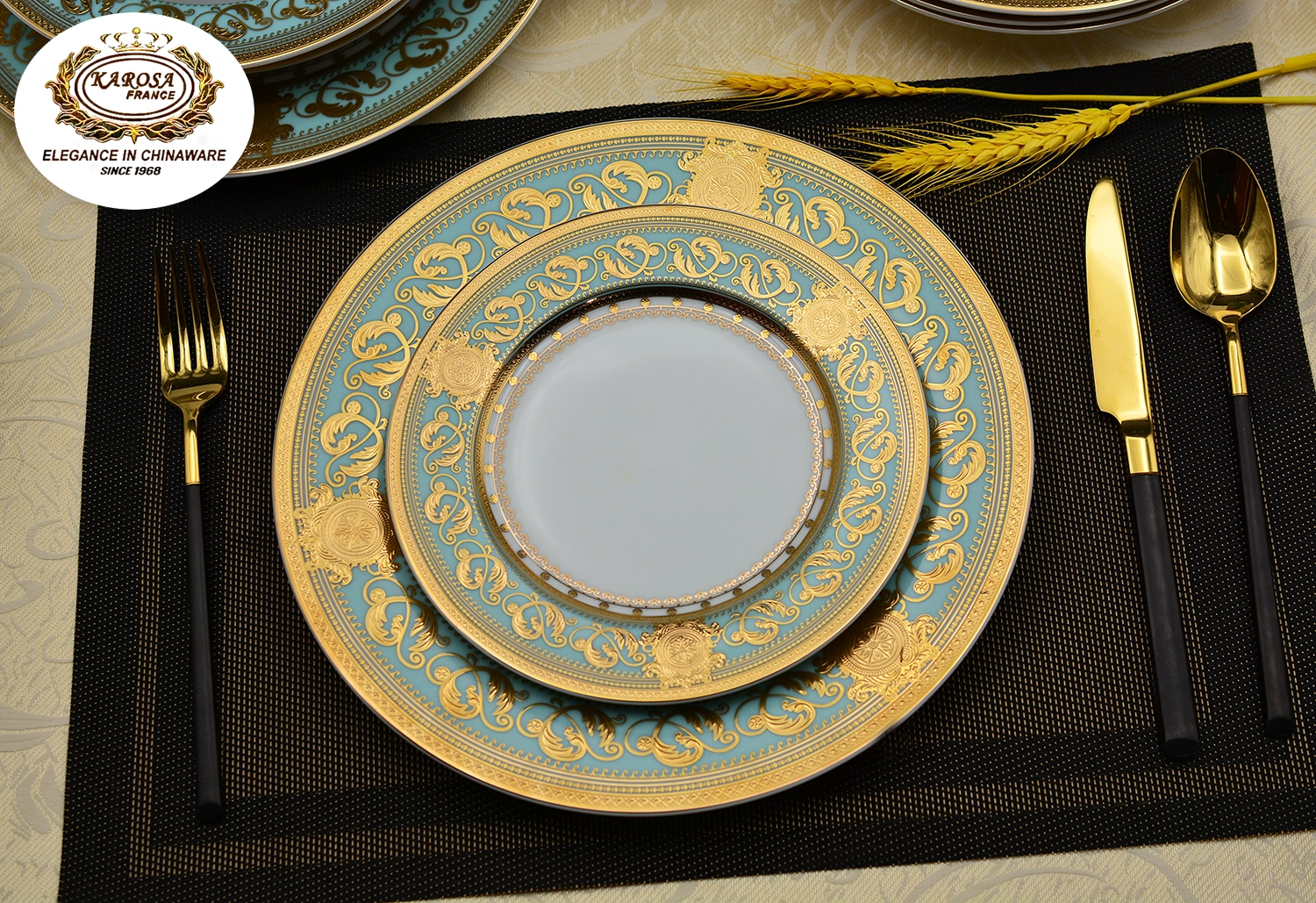 Made with lead-free and cadmium-free food-grade glaze, the gold rim is scratch-resistant and dishwasher-safe, balancing beauty and practicality; the turquoise-gold color matches light luxury and European decor styles, serving as both tableware and a home decor highlight. With exquisite craftsmanship, this luxury bone china set is a top choice for quality living and gifting.