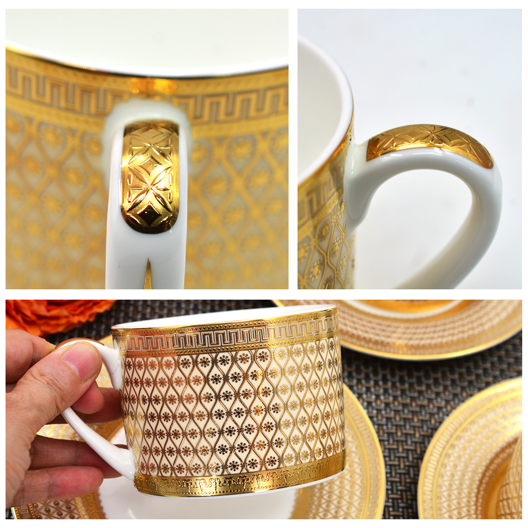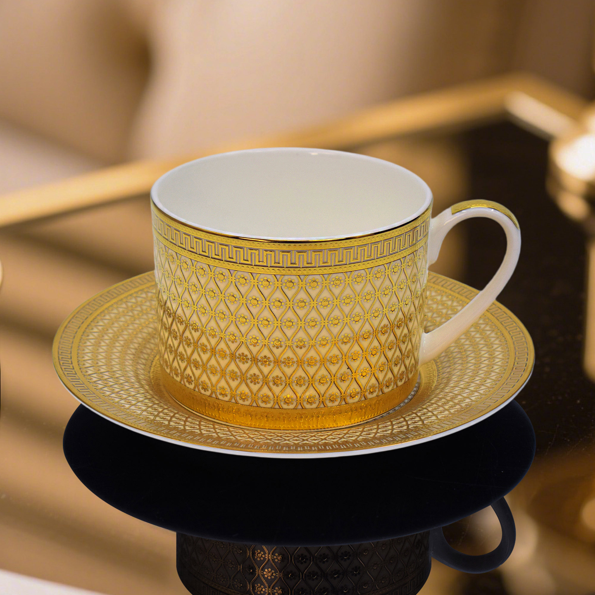 Luxury Elegant Gold Geometric Bone China Cups and Saucer