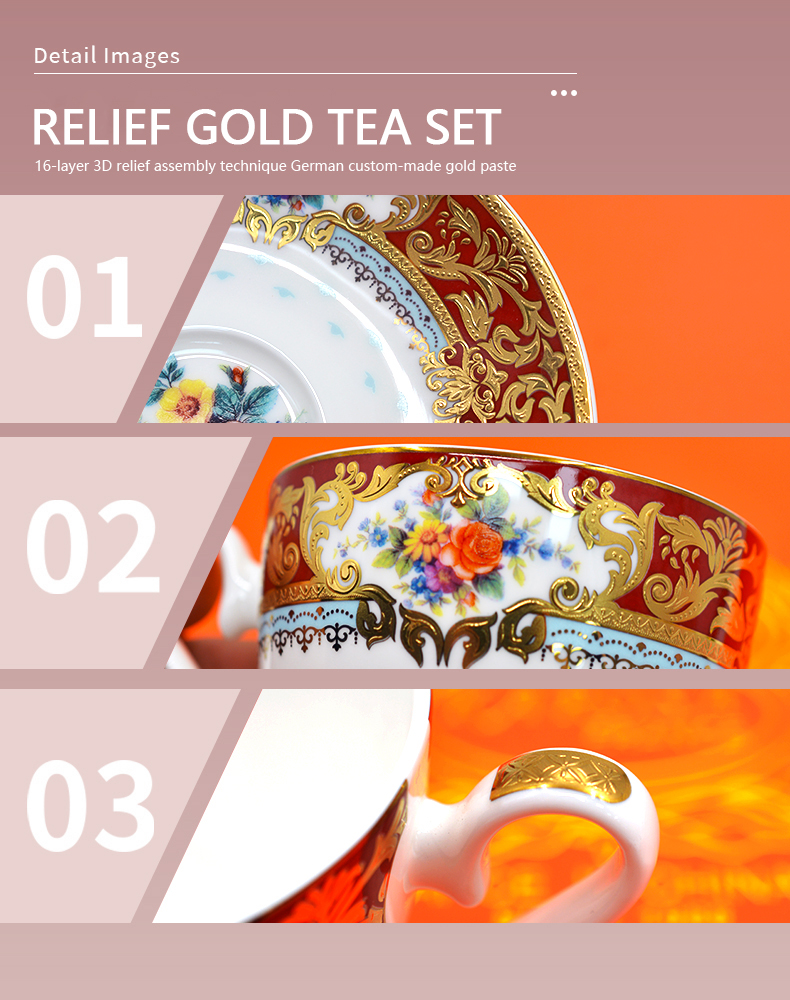 Luxury Embossed Gold Trim Coffee Tea Cup Saucer Set with Gift Box